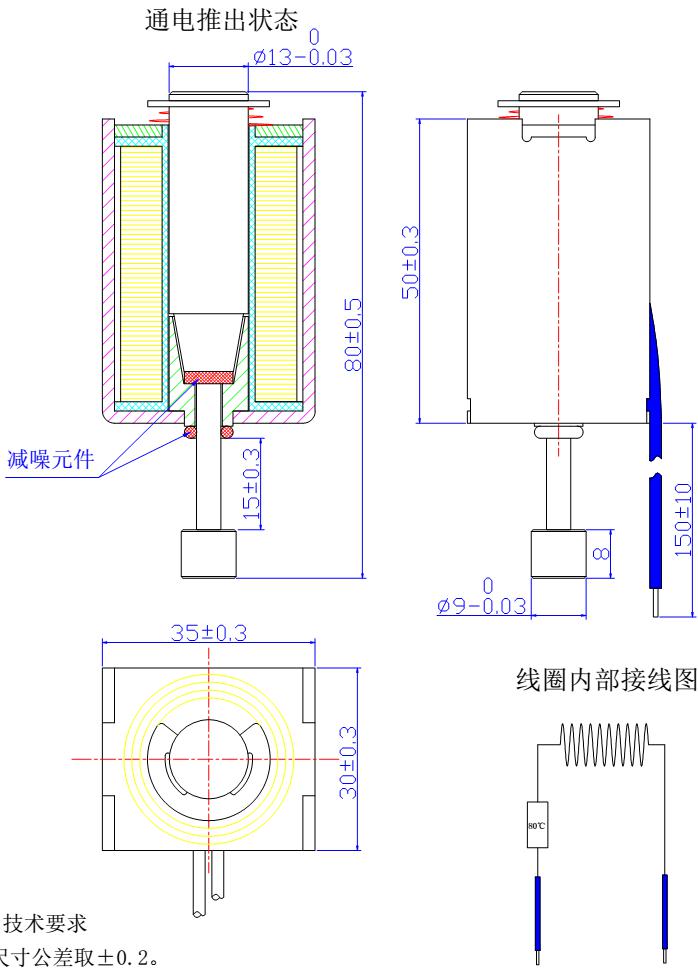 電壓:DC24V 電流:1.5A 功率:36W 行程10mm時(shí)力量大于1KG,行程15mm時(shí)力量大于400克。