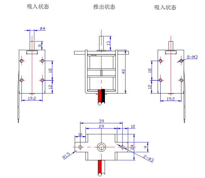 在電磁鐵斷電時,滑桿在永磁體的作用下保持在一個位置(保持力的大小是有磁鐵決定),當給電磁鐵通正向電時(只需要一個瞬間電),滑桿移動到另一個位置(行程最大的位置),再