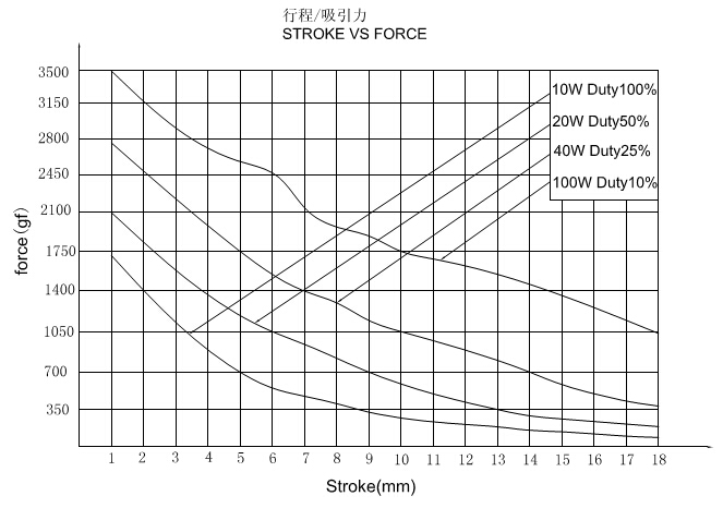 2,功率:一般在6W-30W,根據客戶使用頻率大小以及需要推拉力大小,使用頻率分別有:10%通電、25%通電、50%通電、100%通電。